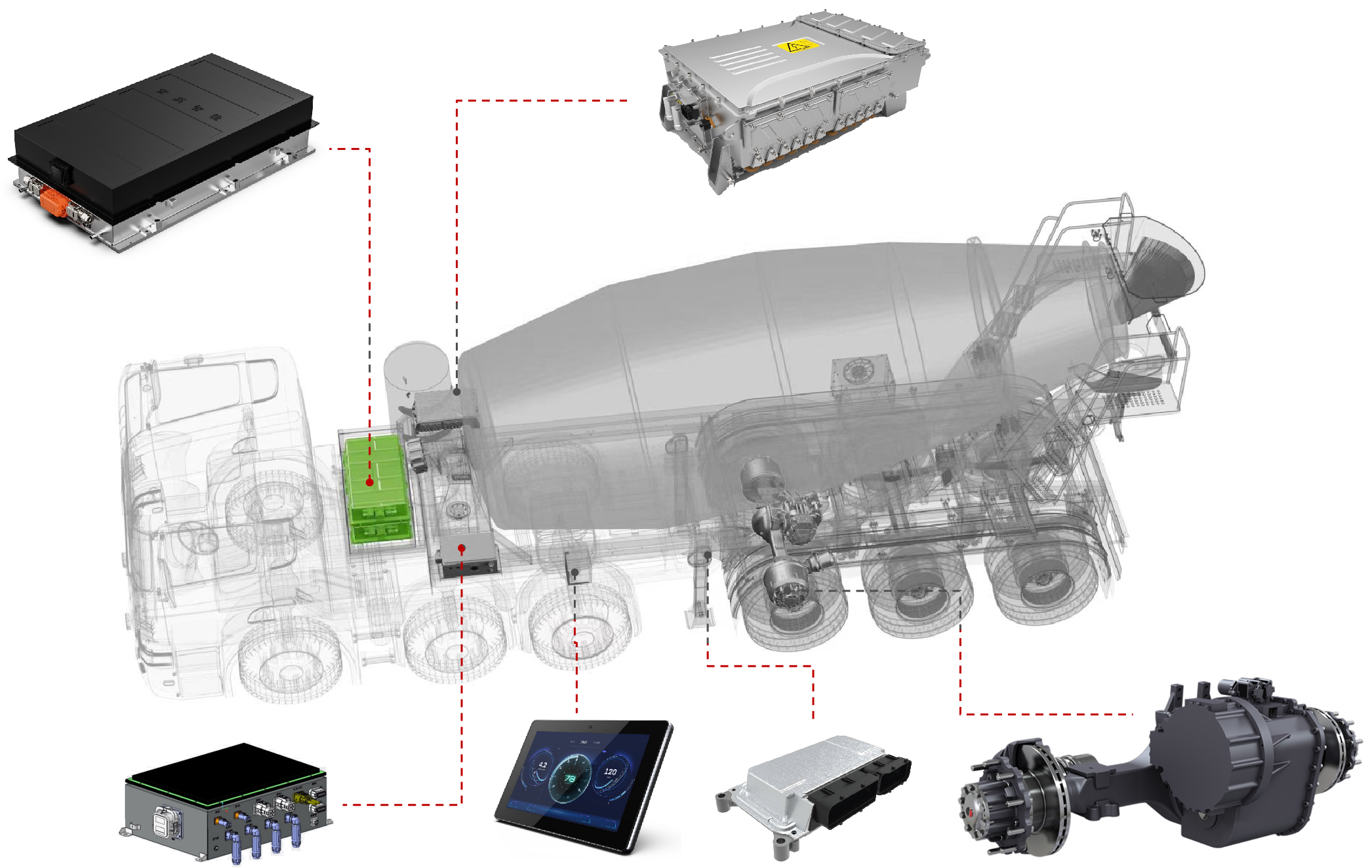 展会上,ok138cn太阳集团智能的智电一体化解决方案引起了广泛关注。工程师团队在现场为参展观众详细介绍了混合动力牵引搅拌半挂车的系统方案。该方案基于ok138cn太阳集团智能历经多年开发的eMagi智电平台,针对牵引搅拌半挂车进行了定向开发,涵盖以下几个方面: